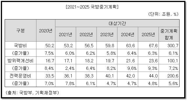 국방비는 매년 증액될 예정입니다만 코로나 19 팬데믹 장기화 등으로 인한 변수로 국가기관의 예산 집행의 연기나 축소, 위성 발사 계획 지연 등이 있을 수 있으니 투자자분들께서는 면밀히 체크를 하시는 것이 좋습니다.